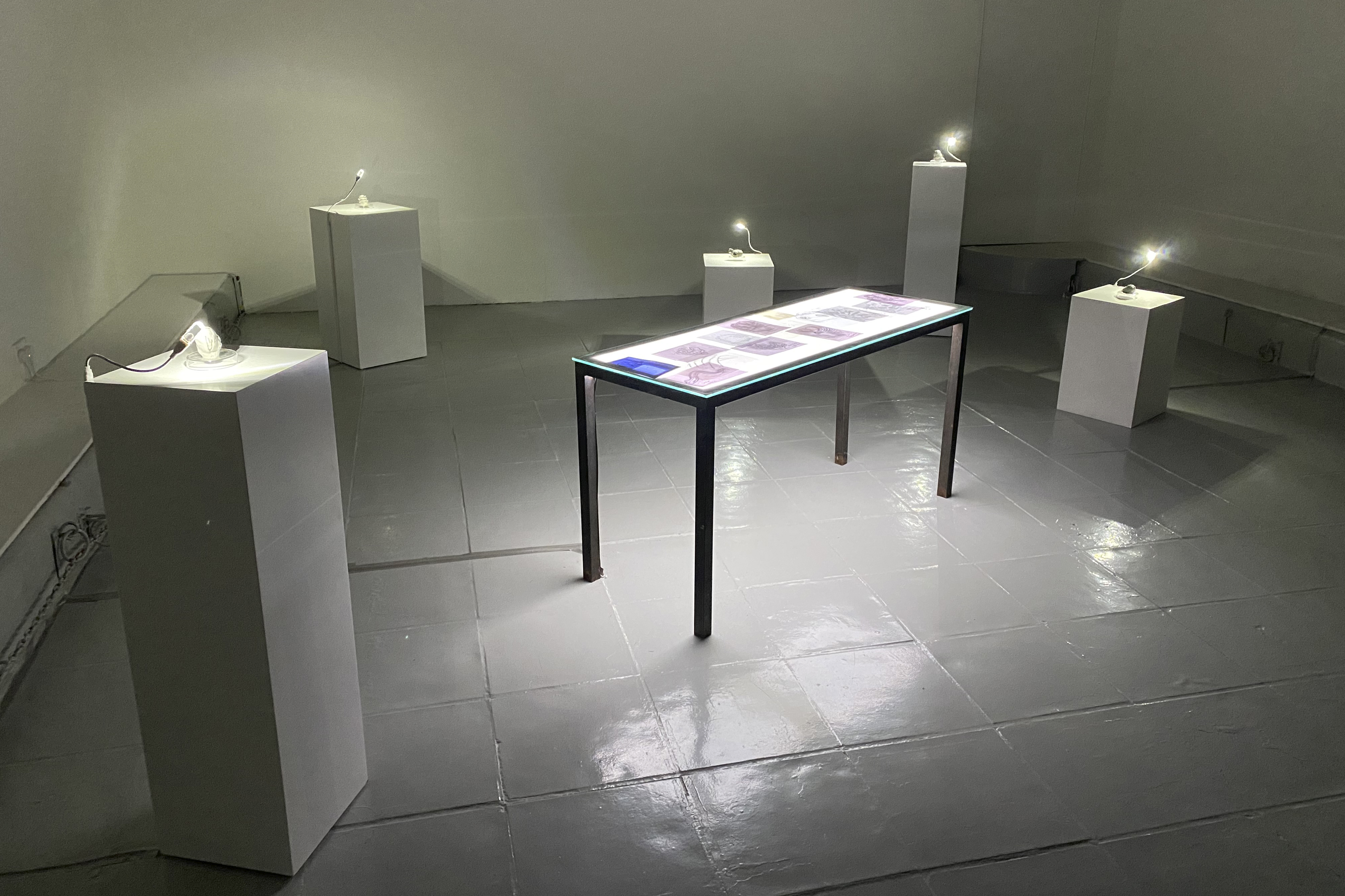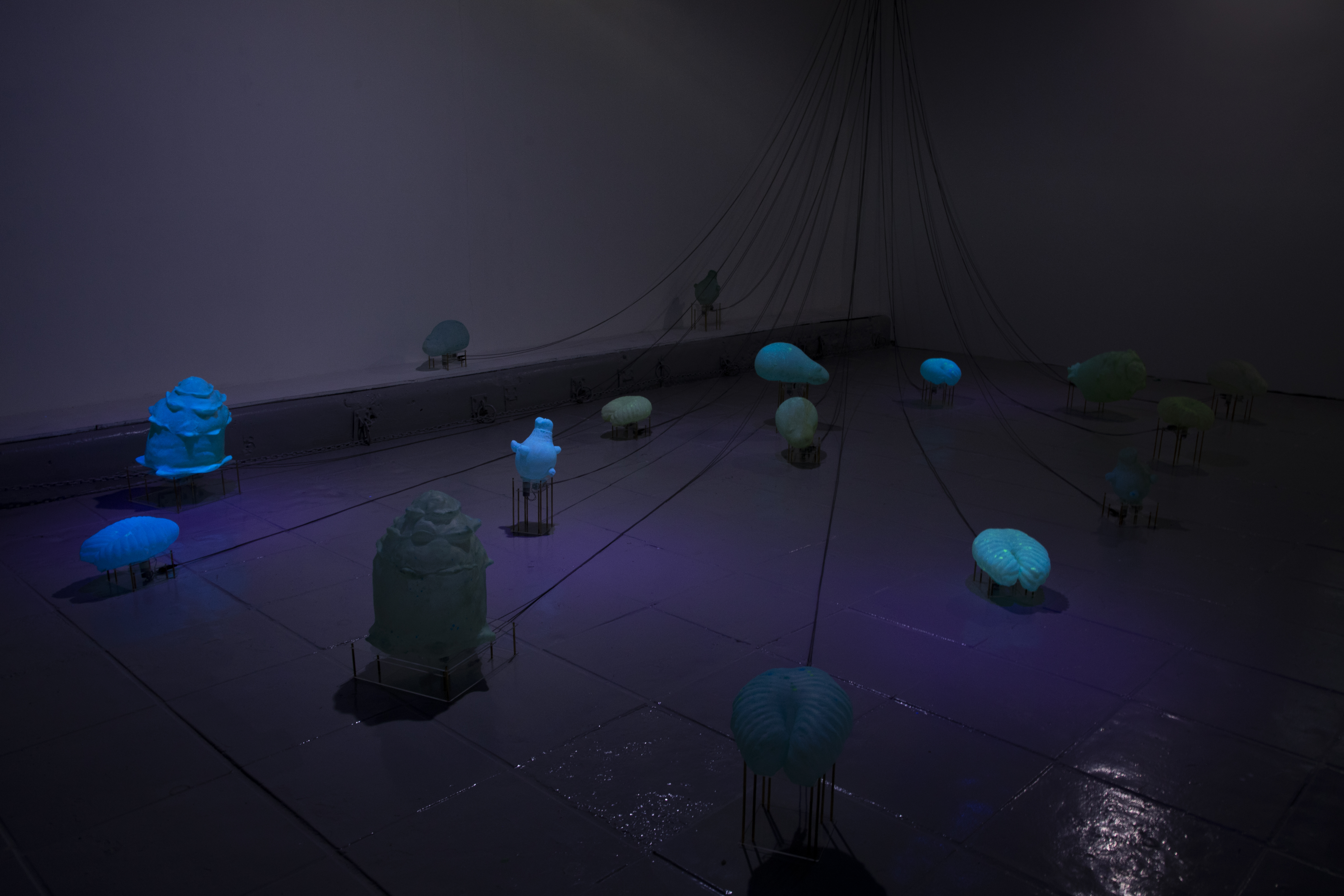 Virology is never just a personal issue; it affects the community structure and ecosystem. From the biological community point of view, it is difficult for us to overcome infectious disease alone. Through an immersive experience, Infections Invader encourages the public to experience the subtle tie between community and ecosystem and to imagine how we will coexist with infectious disease in the future. Part of the exhibition is dedicated to notes, photographs and mini sculptures documenting the scientific research and production stages of the artwork.
